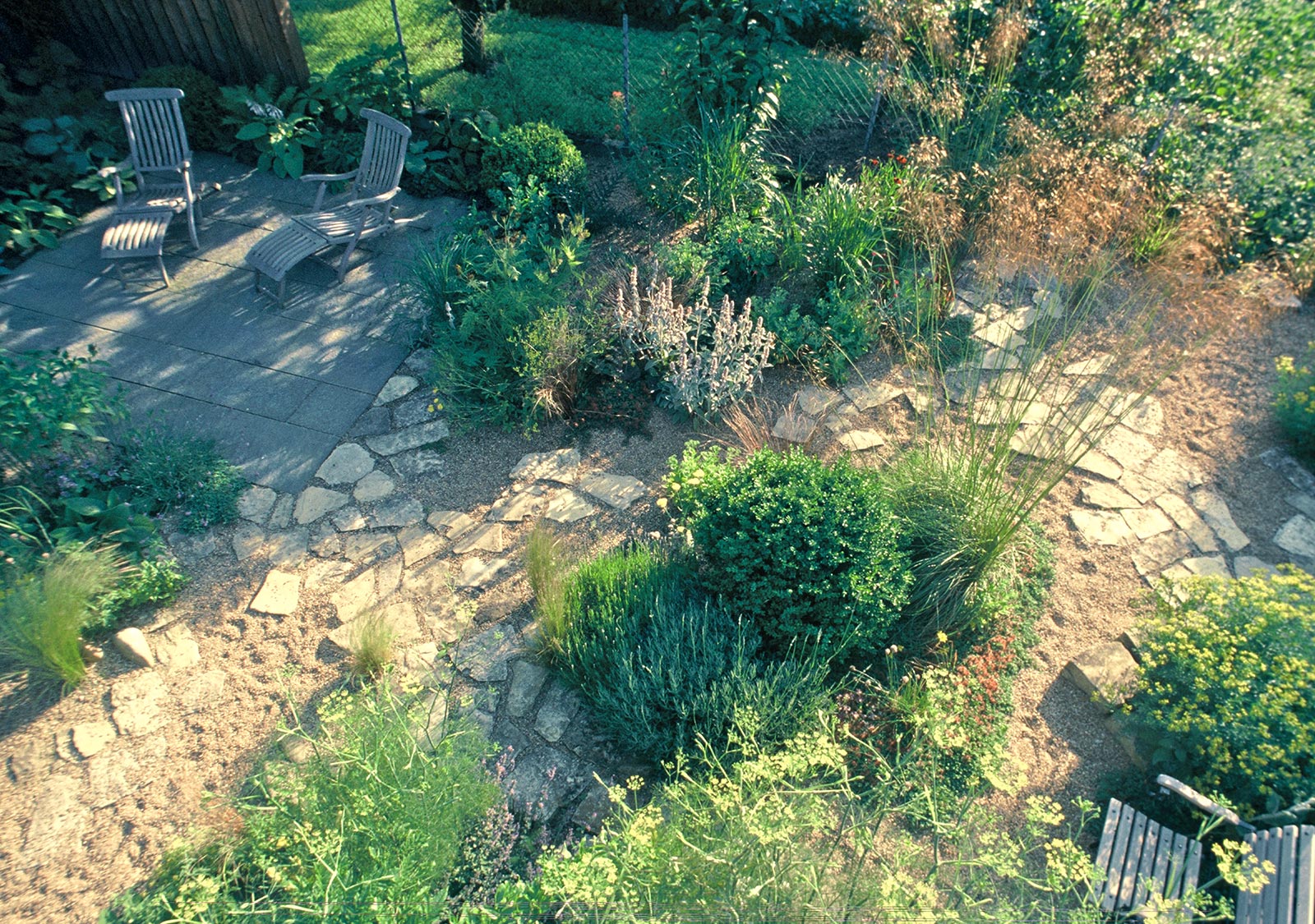 Die eingestreut wirkenden Pflanzen bilden eine essbare Landschaft. Küchen- und Heilkräuter stehen bereit, um bei einem spontanen Barbecue Ihre Mahlzeit bereichern zu können.