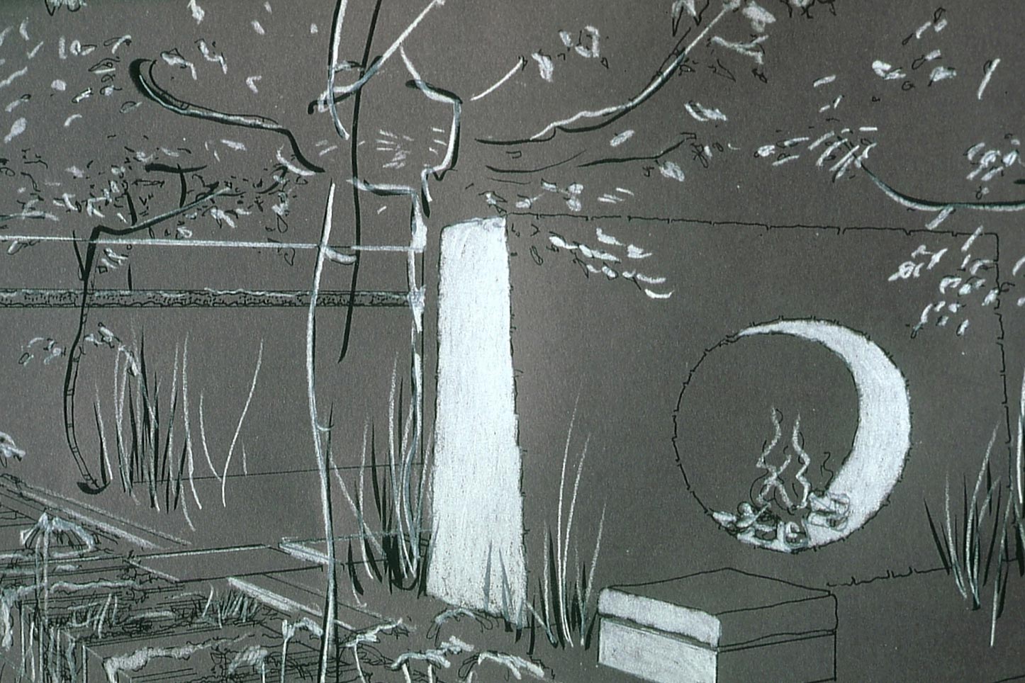 Der Lounge Garten bietet Raum für Erfrischung und Entspannung am murmelnden Wasser, Raum für das Kommunizieren durch das offene Feuer hindurch. Rückzug und Erholung an den Pflanzgesellschaften und unter den Baumgruppen der wilden Äpfel.