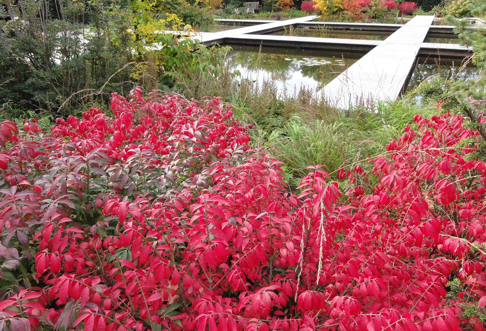 Die formelle Gestaltungssprache der »schwebendenStege« über das Wasser, den Inseln bis in den Pflanzenbereich hinein bildet den konstanten Rahmen.